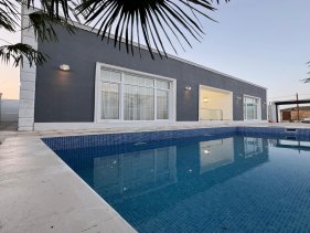 Həyətində hovuzu var.