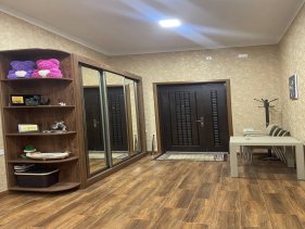 Ev yüksək zövq və keyfiyyətlə təmir olunub. Otaqlarda asılmış çilçıraqları, işıqlandırma sistemi, holl və mətbəxdə isti döşəməsi, tam hazır sanuzelləri var.