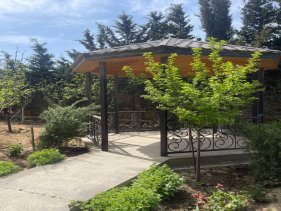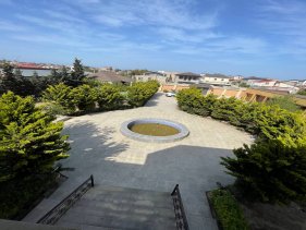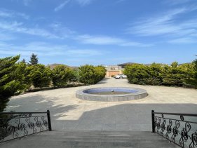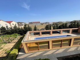Həyətində geniş 2 paltar dəyişmə və hamamlı istilik sistemli filterli hovuz, manqalxanası, təndir, 8 nəfərlik söhbətgah (besedka), 50 nəfərə qədər qonaq üçün (açılıb bağlanan, istilik keçirməyən xüsusi şüşələrlə) yay-qış mətbəxi, qonaq, yataq, mətbəx, sanuzelli, mühafizəçi evi, qaraj, 16 kamera sistemi, kanalzasiya sistemi, pultla idarə olunan darvazası, dekorativ ağacları və gülləri, sanitar qovşağı, yaşıllıq ərazisi, sensorlu gecə işıqları var.