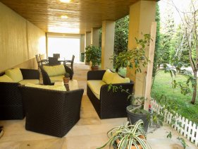 Həyətdə istirahət üçün hər şərait yaradılıb (tennis stolu, yelləncəkli divan, yumşaq oturma dəsti, həyətdə ayrıca şüşəli soyuducu və s. əşyalar).