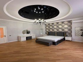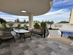 Həyətində: filtirli hovuzu , manqalnisi , sanitar qovşağı ,besedkası (söhbətgahı ) , qarajı və pultla idarə olunan dəmir darvazası .